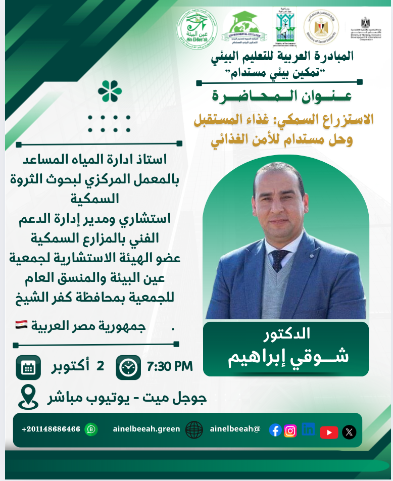 - استاذ ادارة المياه المساعد بالمعمل المركزي لبحوث الثروة السمكية