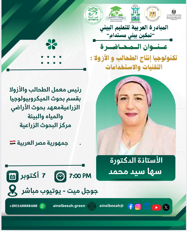 رئيس معمل الطحالب والأزولا بقسم بحوث الميكروبيولوجيا الزراعيةمعهد بحوث الأراضي والمياه والبيئة
