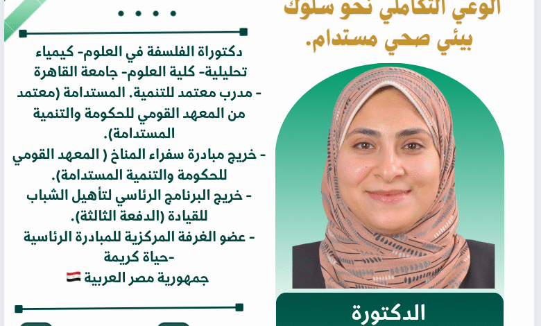 باحثة دكتوراة/ منار جمال الدين حافظمُحاضر ومستشار بيئيعضو مجلس إدارة جمعية عين البيئةجمهورية مصر العربية 🇪🇬 ضمن فعاليات “المبادرة العربية للتعليم…
