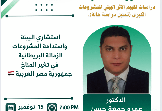 أكمل القراءة »الدكتور/ عمرو جمعة حسناستشاري البيئة واستدامة المشروعاتالزمالة البريطانية في تغير المناخجمهورية مصر العربية 🇪🇬 ضمن فعاليات “المبادرة العربية للتعليم البيئي –…