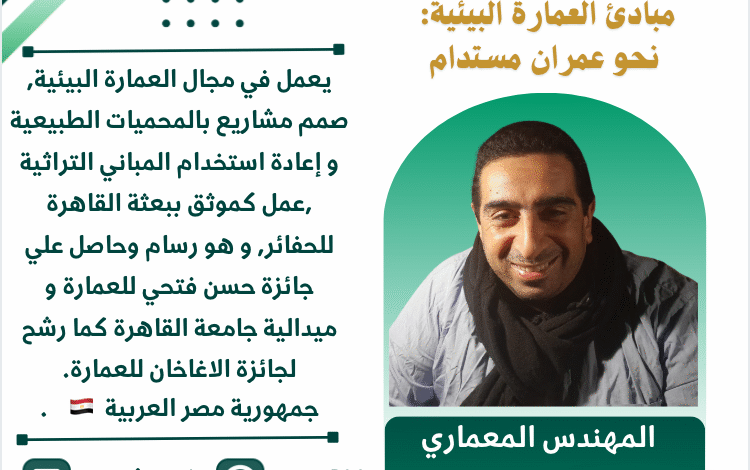 أكمل القراءة »أ.م. الدكتور/ أحمد صلاح الدين شيبة استاذ التكنولوجيا الخضراء وايكولوجيا العمران المساعد كلية الهندسة جامعة بني سويفجمهورية مصر العربية 🇪🇬…